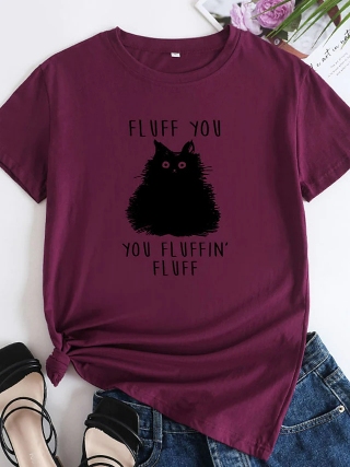 Pattern Fluffy Cat Short Sleeve